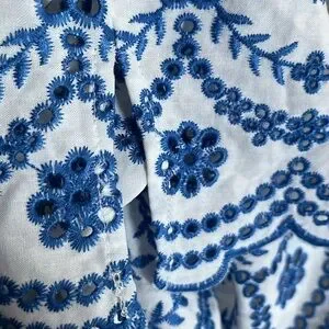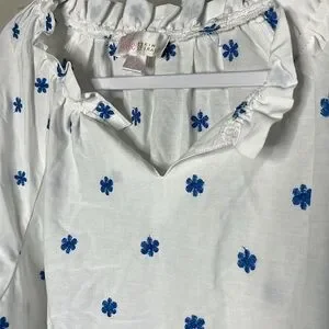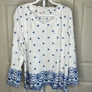Belle Kim Gravel Floral Embroidered Eyelet Ruffled Neck Blouse size xl