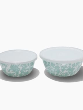 Inspired by coastal colors, the Sea Glass Swirl Nesting Bowls feature soothing blue and green swirls. These enamelware bowls are perfect for mixing, serving, or storing your favorite dishes. The set includes a variety of sizes, offering both practicality and beauty for any kitchen.