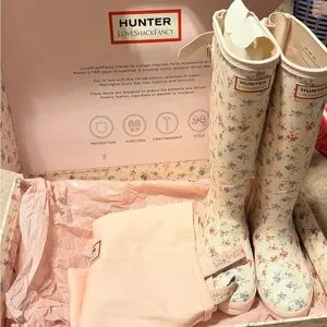 LoveShackFancy x Hunter Collab Floral Rain Boots with Pink Patchwork NEW IN BOX