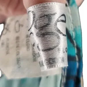 Elegant kaftan with a mix of blue and green patterns. Features a flowing design and deep V-neck.