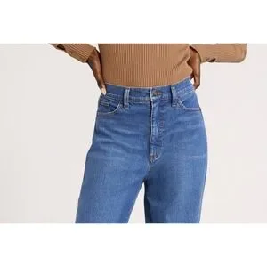 High-rise straight leg fit with stretch denim for comfort and structure. Classic everyday jeans with modern stovepipe silhouette.