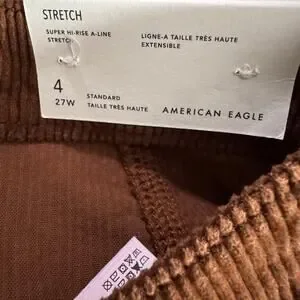 28. NWT American Eagle Super Hi-RIse Brown Corduroy A-Line Button Up Skirt SZ:4
