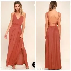 Lulus Women's Lost in Paradise Strappy Maxi Dress in Rusty Rose