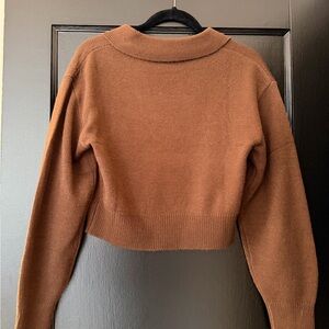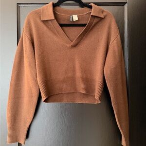 H&M Cropped V-Neck Collared Sweater - Rust Brown