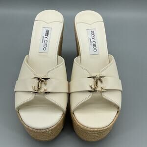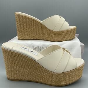 NEW Jimmy Choo Women’s Leda Leather Espadrille Wedges Latte/Gold Size 10