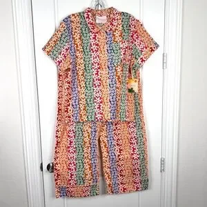 BANDO Floral Print Leisure Top & Pants Pajama Set NEW Size L Top XL Pant Daisies
