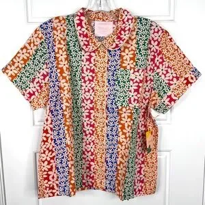 BAN.DO Floral Print Leisure Top & Pants Pajama Set NEW Size L / XL Daisies