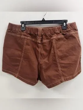 *im a 10 and shockingly these are about 1-2” too big. Cargo-style women's shorts in chocolate brown. Front flap pockets and visible contrast stitching. Belt loops and a button closure. Casual, structured silhouette for everyday wear.