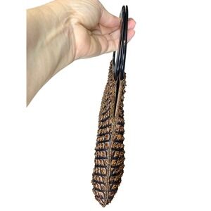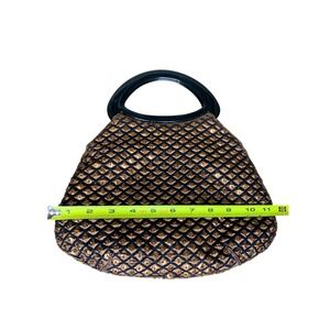 Keywords: evening bag, vintage bag, sequin bag, beaded bag, top handle bag, party purse, cocktail bag, black bag, copper sequin bag, formal bag, special occasion, geometric pattern, retro, clutch