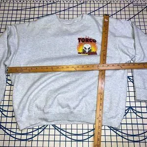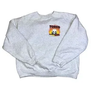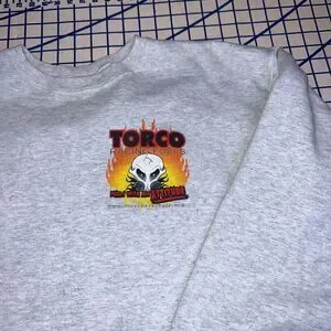 The 2006 Torco Racing Sweatshirt in size XL is a vintage piece featuring a solid gray color with a double-sided graphic print. Made of fleece fabric, this pullover sweatshirt has long sleeves, a crew neck neckline, and is machine washable.