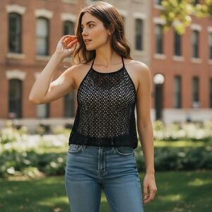 Keywords: crochet, lace, halter, tank top, cover up, festival, bohemian, sheer, summer, vacation, beachwear, crop top