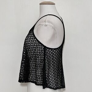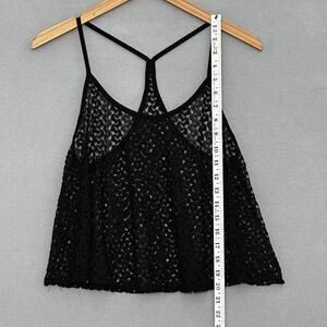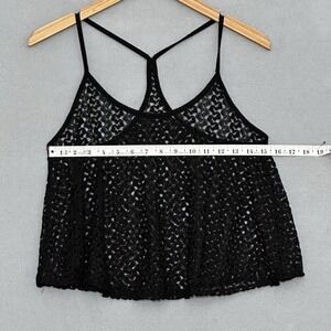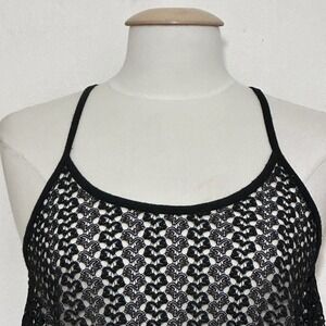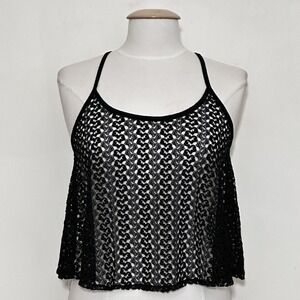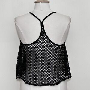 Vintage Y2K Womens Top L Black Sheer Lace A Line Crop Racer Back Tank Whimsigoth