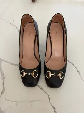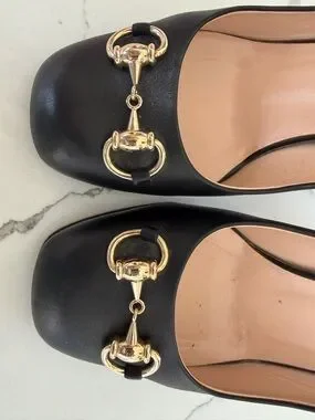 Gucci Black Leather Pump with Gold Horsebit Accent