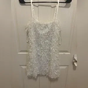 Lulus white feather fringe mini dress size xs homecoming party dress