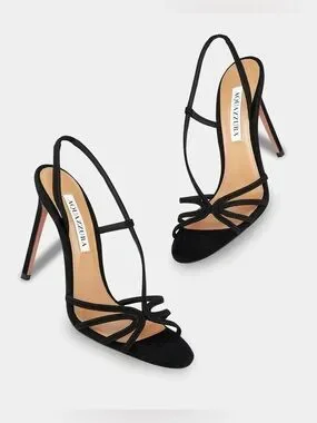 Aquazzura Talk To Me 105 Black Suede Stiletto Sandal - great condition, size 39