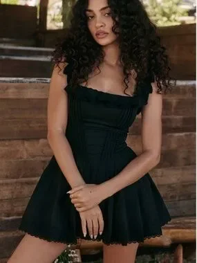 The PERFECT summer mini black dress! The ruffled straps can be worn up or off-shoulder, giving a sexy-yet-casual vibe that every sun dress lovers crave for. Super high-quality cotton fabric, so comfortable and sturdy to hold up the silhouette shape. Got this for last fall, but the weather here got cold way too quickly, now hoping it can brighten up someone else's spring/summer wardrobe collection!