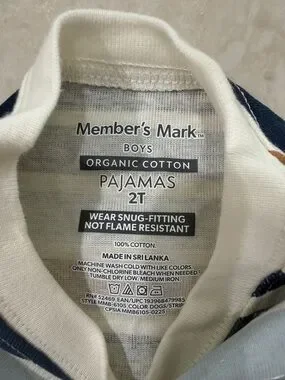Cozy two-piece pajama set in blue, navy, and brown stripes. Soft knit fabric for comfortable sleep. Elastic waist pants and snug cuffs for easy wear. Classic stripe look kids will love. NWOT