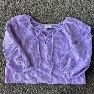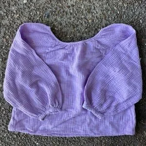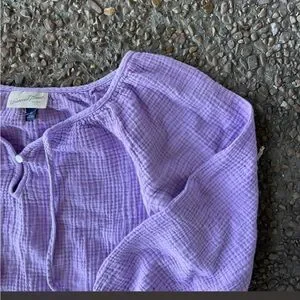 so light and airy! perfect for spring! a beautiful light purple color with puffy sleeves! very flowy and feminine!