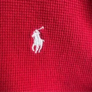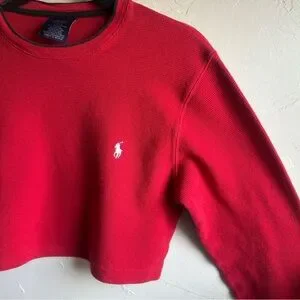 Polo Ralph Lauren Red Waffle Knit Crop Top Preppy Y2K Baby Tee Thermal Sz S