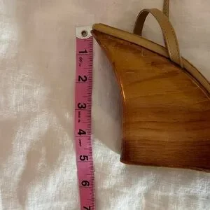 GUESS Y2K Tan Wedge Wood Sandals - Sleek Strappy Design size 7