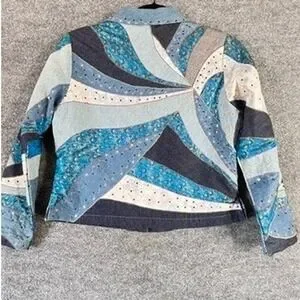 Patchwork Denim 100% Cotton Jacket Sz M Art to Wear Shabby Chic Hippie Bohemian