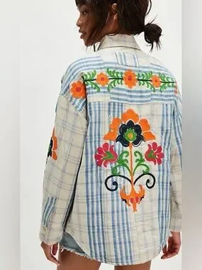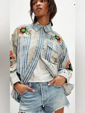 Z678. FREE PEOPLE Embroidered Sashiko Shirt $198 New
