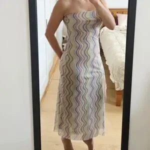 Zara strapless Multi-Color Mesh Dress, with slit on the side.