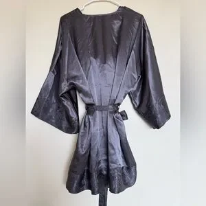 Victoria’s Secret Vintage Gray Satin Kimono Robe Chemise Set