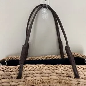 SONOMA Life + Style Woven Straw Bag is a chic and stylish top handle bag designed for women. The exterior color of the bag is a versatile tan, perfect for pairing with a variety of outfits. Made from straw, this unique bag adds a touch of natural charm to your look. The Sonoma brand ensures quality and craftsmanship, making this bag a must-have accessory for any coastal-inspired ensemble.