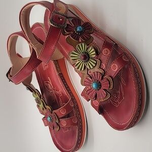 L'ARTISTE 🌺🌼 Goodie Sandal sz8.5 embellished leather handcrafted SPRING …