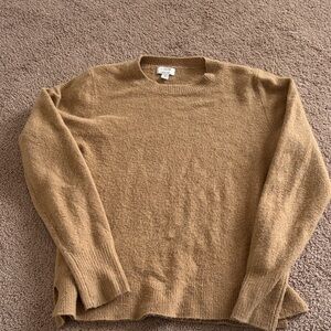 Warm camel crewneck sweater from J. Crew. Soft knit with ribbed neckline and cuffs. Lightweight yet cozy layer for everyday wear.