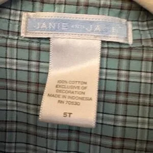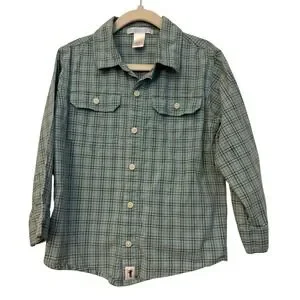 Janie and Jack Boys Teal Blue Plaid Button Down Shirt Long Sleeve 5T Cotton