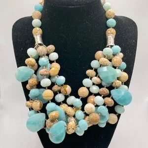 INCA Statement Necklace Natural Stone Single to Multi-Strand Bead Sterling