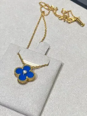 The beaded edging and the clever use of the central diamond add a touch of refinement and sparkle to the classic four-leaf clover design.