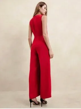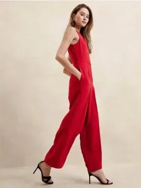 Banana Republic Crepe Sleeveless Cowl-Neck Jumpsuit Cherry Red 12