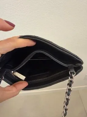 CHANEL Black Quilted. Calfskin Leather. Crossbody with CC coin.