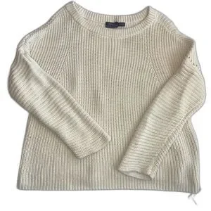 Classic crewneck sweater by Polo by Ralph Lauren. Soft textured knit in a neutral cream tone. Long sleeves and ribbed hem. Versatile, timeless layering piece.
