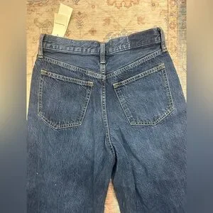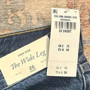 Classic wide leg silhouette. High-rise waist with clean front. Deep blue denim with subtle fading. Versatile and timeless style. ONLY TRIED ON! NWOT!