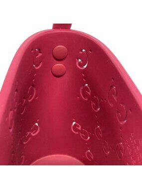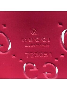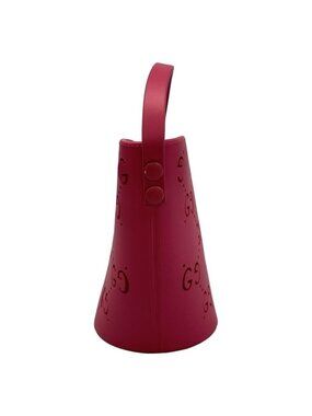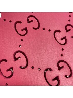 This is an authentic Gucci Tote in a vibrant pink color. The bag features the iconic Gucci interlocking "G" logo pattern perforated throughout the leather exterior, adding a refined and sophisticated touch.