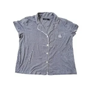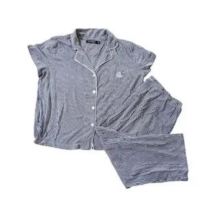 Lauren Ralph Lauren Striped Button-Up Pajama Set - Navy & White XL