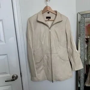 Vintage Danier Genuine Leather Jacket Creamy Taupe, Zip, Minimalist Cut 8/10