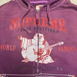 Supreme True Religion Purple Zip Up Hoodie