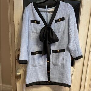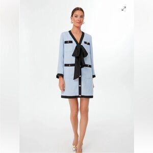 Tuckernuck Light Blue Bouclé Dress with Black Trim and Bow