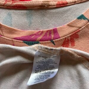 LOFT sleeveless crew neck mini dress features a vibrant floral print in pink and orange tones
