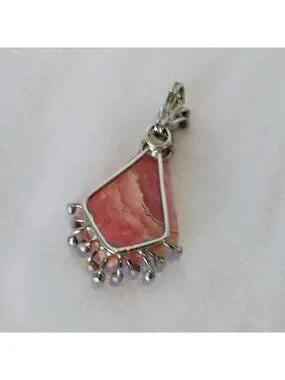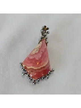 Artisan Handmade Pink Rhodochrosite Sterling Silver Pendant Modernist Brutalist