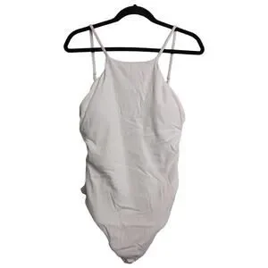 Andie Asbury Ribbed One Piece Coco High Neck Low Back Adjustable L New