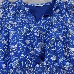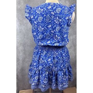 Vineyard Vines Floral Ruffle Sleeve Mini Dress Sz S Ocean Reef Blue Smocked EUC