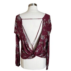 Free People Elsa Open Back Jersey Burgundy Floral Open Back Top Women’s Medium