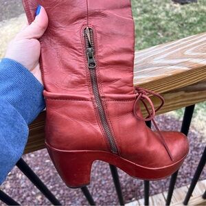 Kork-Ease Red Leather Platform Boots - Size 8