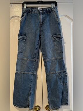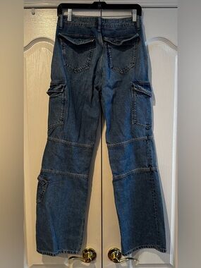 Zara Medium Wash Cargo Split Hem Jeans - Size 4; excellent used condition; wide leg cargo style; split hem; medium wash